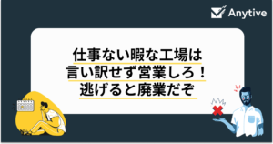 日本全国、板金から、機械加工、製缶まで幅広いモノづくりの町工場が「AnySales」を導入して成果を出しているので、自分で営業できないなら、すぐに新規開拓の丸投げを検討すべきです。