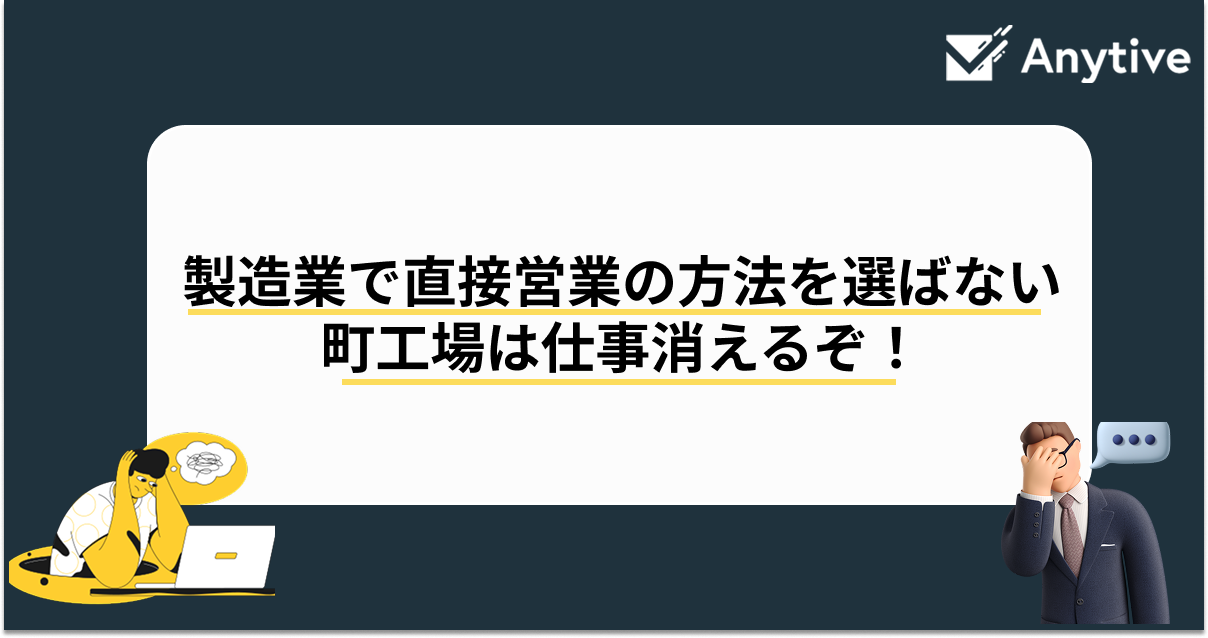 私たち、Anytiveは中小金属加工業で活躍するアトツギの方々に新規顧客開拓・デジタル化・補助金活用の3つをご提案しております。