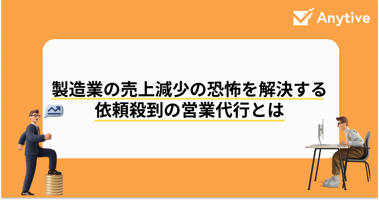 以下の動画は売上1社依存の課題を抱えながら「営業担当がいない」「営業活動する時間がない」という悩みを抱えていた株式会社曽我製作所様が新規開拓を「AnySales」に丸投げで依頼した際の導入事例動画です。