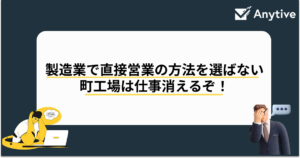 弊社は日本で唯一、金属加工業の新規開拓を丸投げで支援する営業支援サービス「AnySales」を提供し、日本全国の町工場の新規顧客開拓を支援しております。