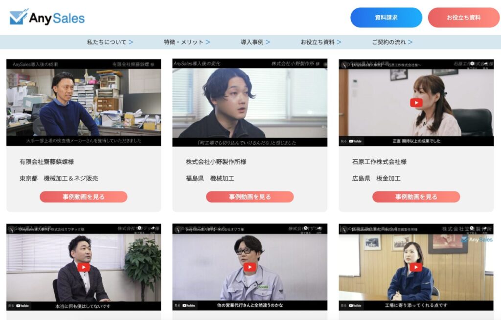 弊社は日本で唯一、金属加工業の新規開拓を丸投げで支援する営業支援サービス「AnySales」を提供し、日本全国の町工場の新規顧客開拓を支援しております。